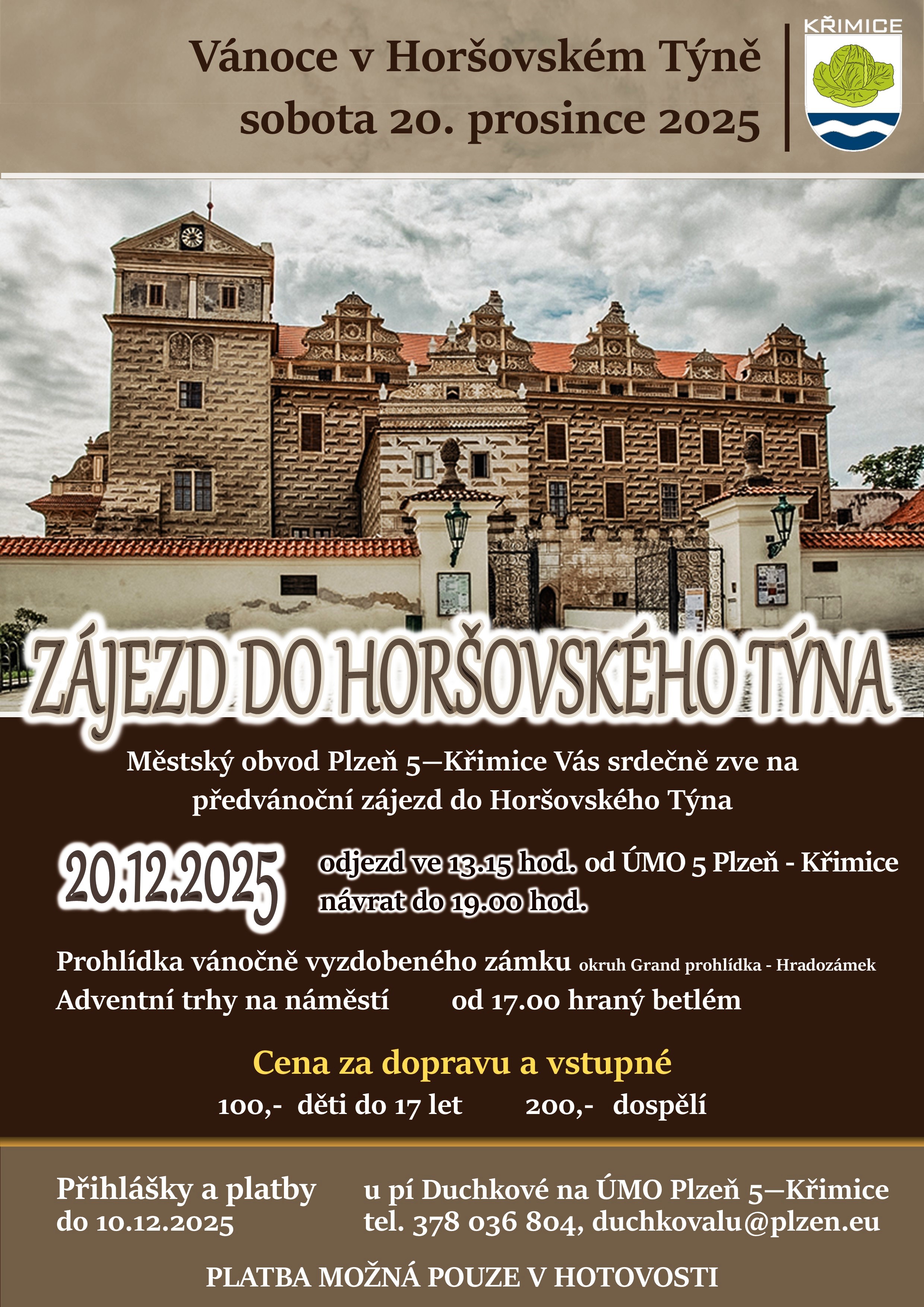Městský obvod Plzeň 5 - Křimice Vás srdečně zve na předvánoční zájezd do Horšovského Týna.