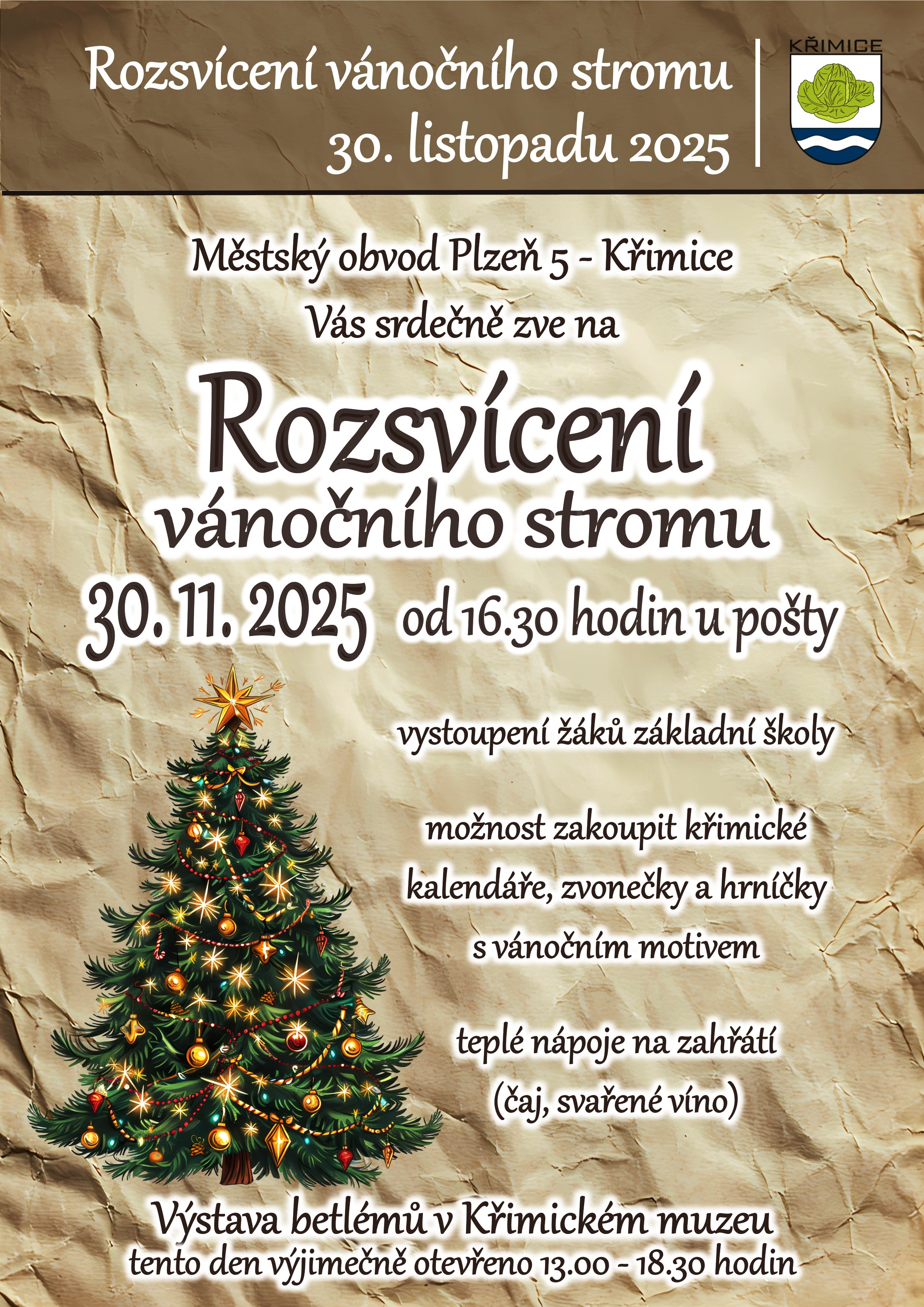 Městský obvod Plzeň 5 – Křimice srdečně zve všechny občany na slavnostní rozsvícení vánočního stromu.